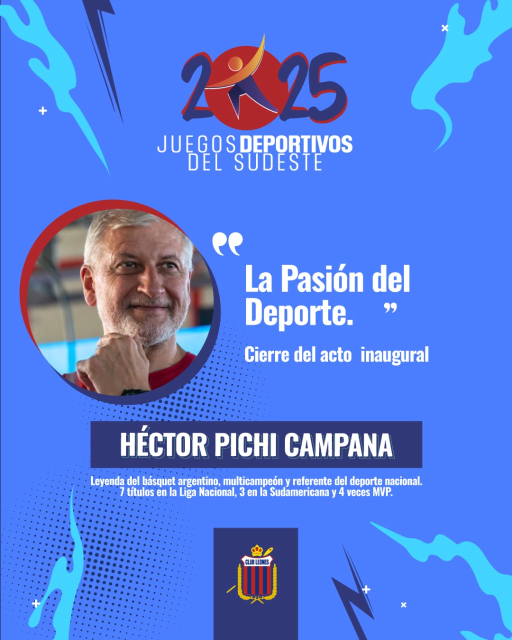 Este jueves 24 de abril a partir de las 19 horas en el gimnasio del Club Leones se dará inicio a una nueva edición de los Juegos Deportivos del Sudeste, organizado el Club Leones, una ceremonia pensada para celebrar el espíritu del deporte, la unión entre localidades y el inicio de una competencia donde se destacan el esfuerzo, la alegría y la pasión de cientos de chicos y chicas de toda la región.