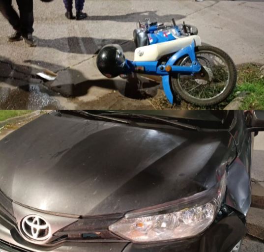 El siniestro se registró alrededor de las 23:40 en la intersección de calles Garibaldi e Italia, donde colisionaron una motocicleta y un automóvil.