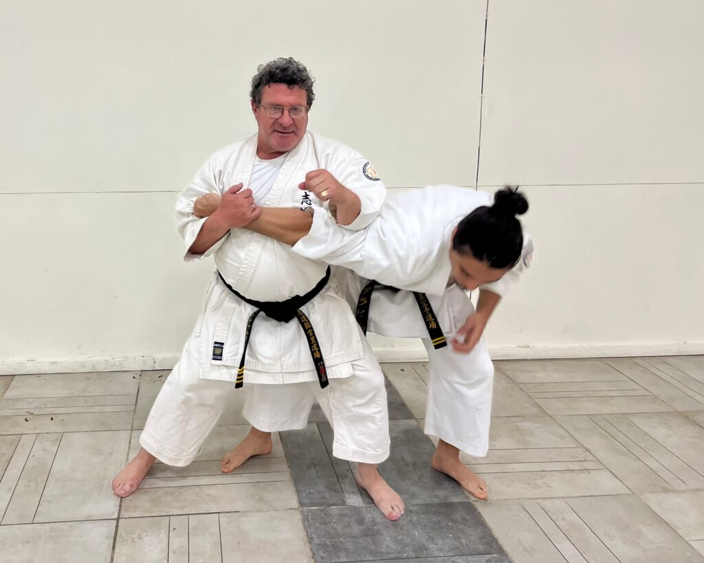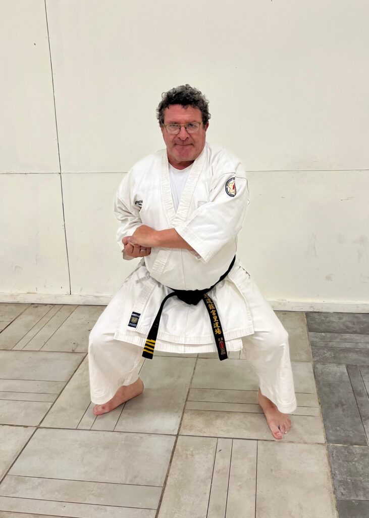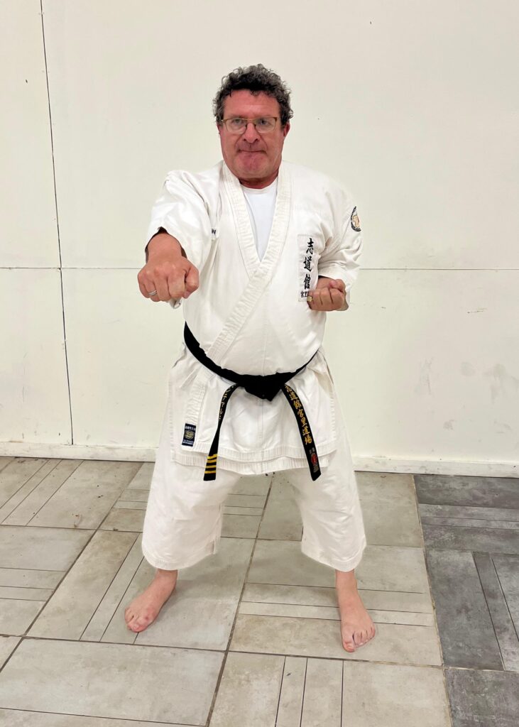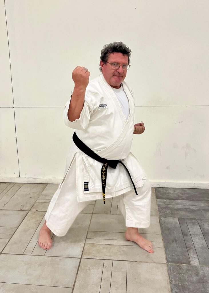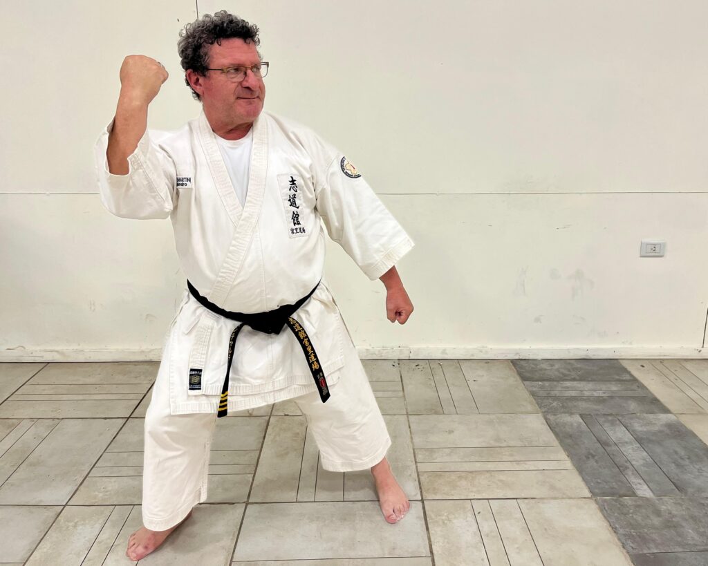 “Comencé con el karate en el verano de 1979, en el Country Club de Bell Ville. Un primo hermano sabía que me gustaban mucho las artes marciales y me invitó a sumarme. «¿No querés venir conmigo a karate? Es espectacular para que se te vaya el miedo», me dijo y así empecé. Fue prácticamente amor a primera vista. En 1989, por razones de la vida, tuve que dejar y en 2014 retomé”, cuenta el instructor oriundo de Bell Ville, que desde 2004 vive en Leones.