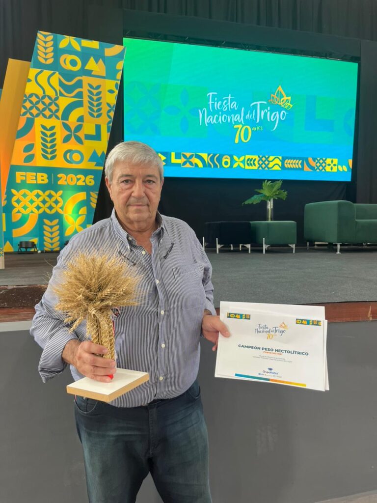 Criado en una familia de agricultores, Víctor Forte se dedica a las tareas del campo desde chico. A sus 66 años, acaba de convertirse en campeón de la categoría Peso Hectolítrico con una muestra de 82,2 kg/hl. Si bien el productor había enviado sus trigos en otras ediciones, esta fue la primera vez que ganó el concurso, sorprendiendo a otros agricultores de la zona por la calidad de los granos cosechados en Bouquet.