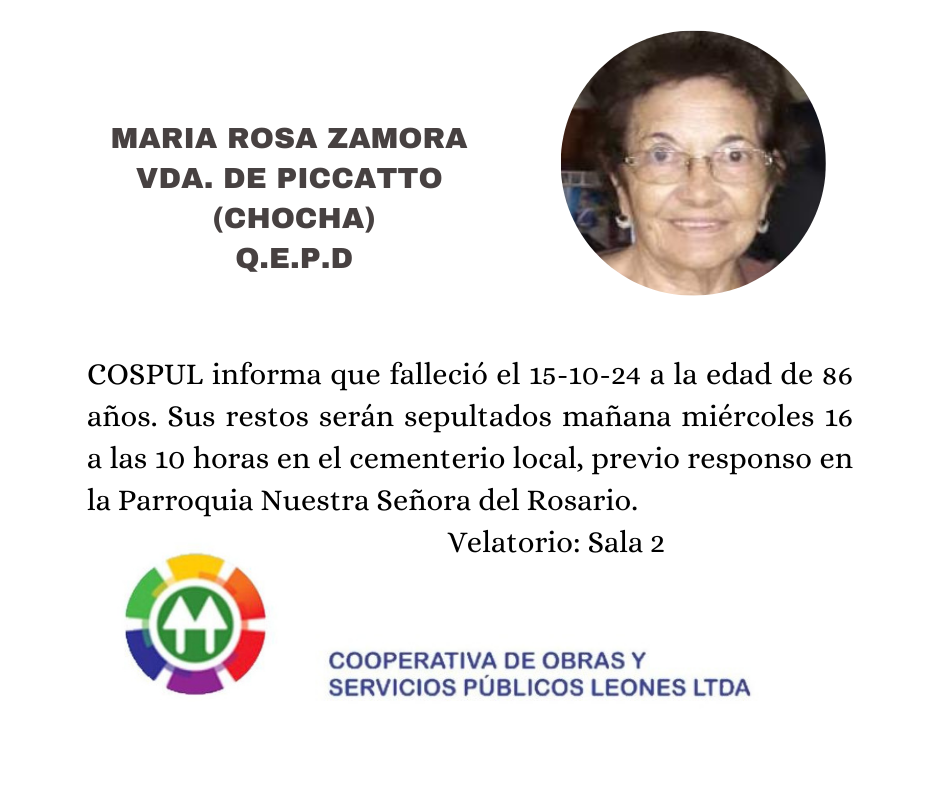 María Rosa Zamora Vda. de Piccatto (Chocha) Q.E.P.D